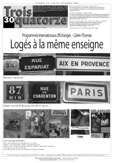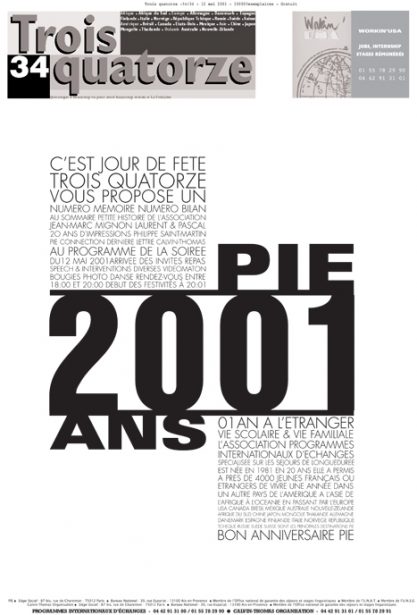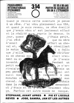 Compagnon de route de PIE, le journal Trois Quatorze relate la vie et l’expérience des adolescents et des familles qui se lancent dans l’aventure du séjour scolaire de longue durée. Trois quatorze publie depuis plus de 30 ans, entretiens, témoignages, reportages, portraits… retrouvez toutes les unes depuis 1981 !