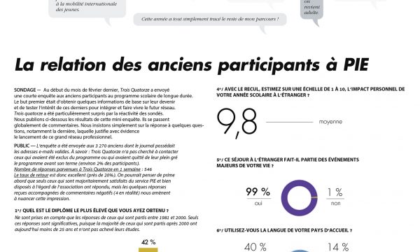 Ils ou elles sont partis pour un an à l’étranger. Elles ou ils nous envoient de leurs nouvelles. Courrier des participants aux programmes d’une année à l’étranger.